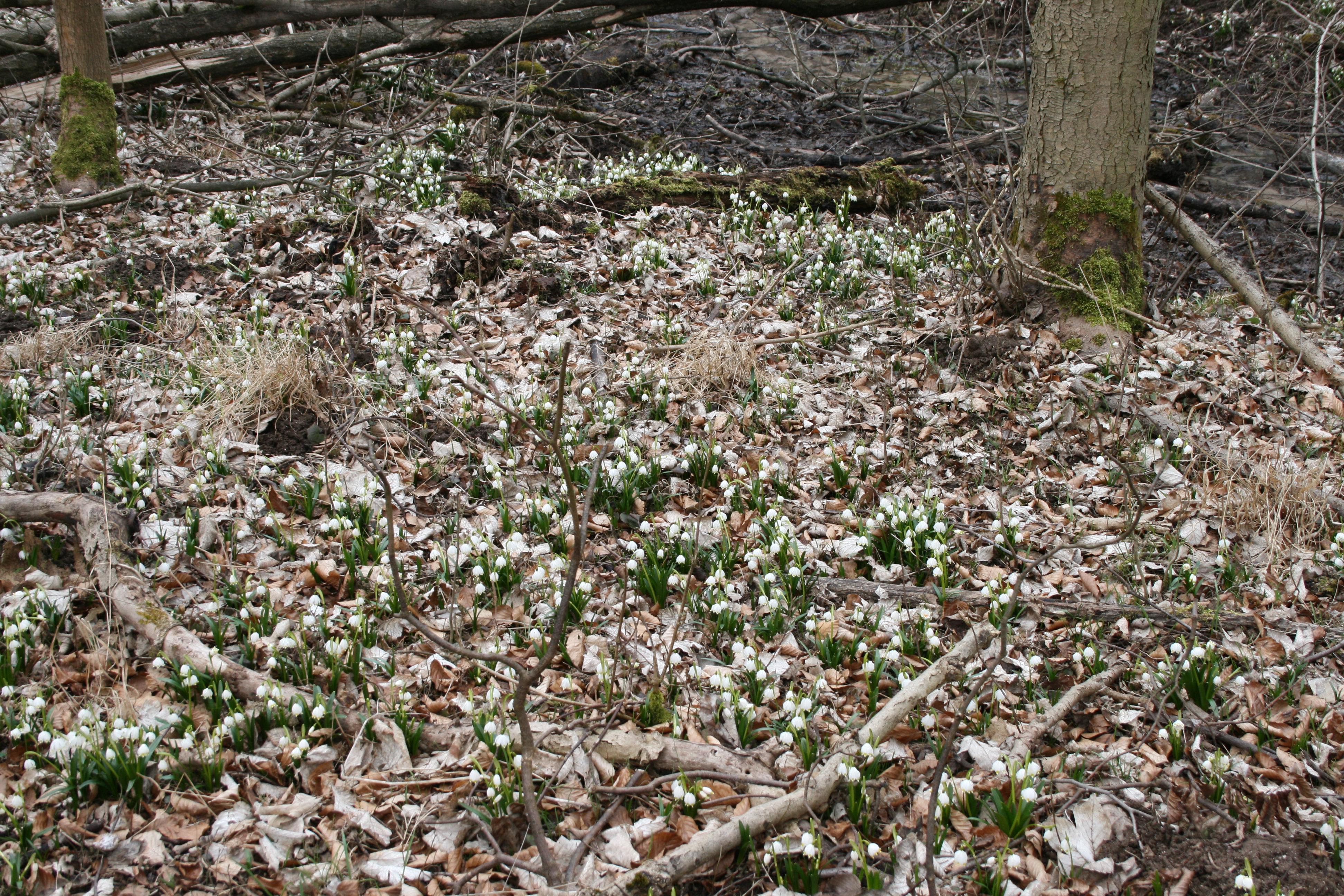 Tak na chwilę obecną wygląda stopień rozwoju śnieżyc w rezerwacie. Zdjęcia zrobił wczoraj jeden z pracowników naszego Nadleśnictwa. Ten weekend nie będzie jeszcze dobrym momentem do odwiedzania "Śnieżycowego Jaru". Kwiatków prawie nie widać, a jak już jakiś uda się dostrzec, to są to wyłącznie pojedyncze roślinki i malutkie skupiska. Trzeba będzie uzbroić się w cierpliwość. Kulminacji kwitnienia spodziewamy się za 2-3 tygodnie. Proszę nie sugerować się datą na zdjęciach - aparat złośliwie sam nam ją zmienił.
