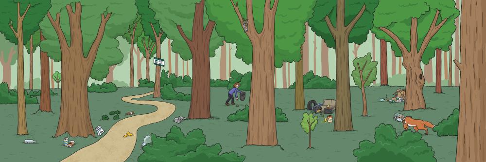Trotz regelmäßigen Patrouillen und Waldaufräumen, sowie zahlreichen sozialen Initiativen, lassen sich im Wald Halden von Müll auffinden. Jedes Jahr beseitigen Förster über 100.000 m³ von Müll. Mit soviel Müll könnte man fast eintausend Eisenbahnwaggons füllen!