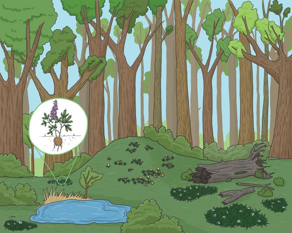 Dieses Phänomen wir Frühlingsaspekt genannt, das heißt das Massenerblühen von Vorfrühlinggattungen der Pflanzen. Die meisten hiervon gehören Geophyten an – einer Pflanzengruppe die den Winter in Form von besonderen Untergrundorganen durchhalten, z.B. Sporen, Wurzelstock oder Zwiebeln. Sie beinhalten Knospen deren angesammeltes Vorratsmaterial das schnelle Aufkeimen ermöglicht, sowie das Nutzen des Lichts das zum Erdboden gelangt bevor Blätter an den Bäumen erscheinen.